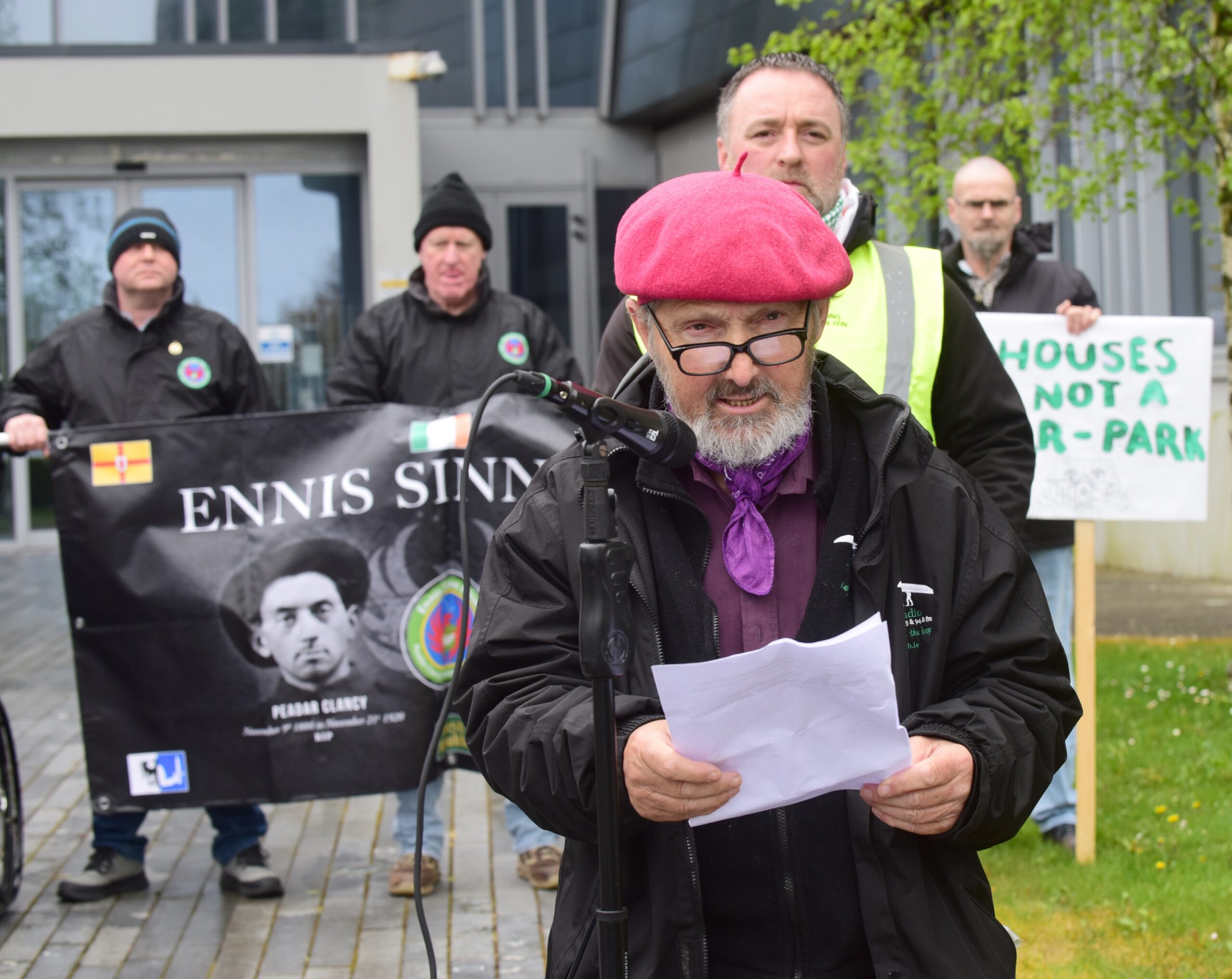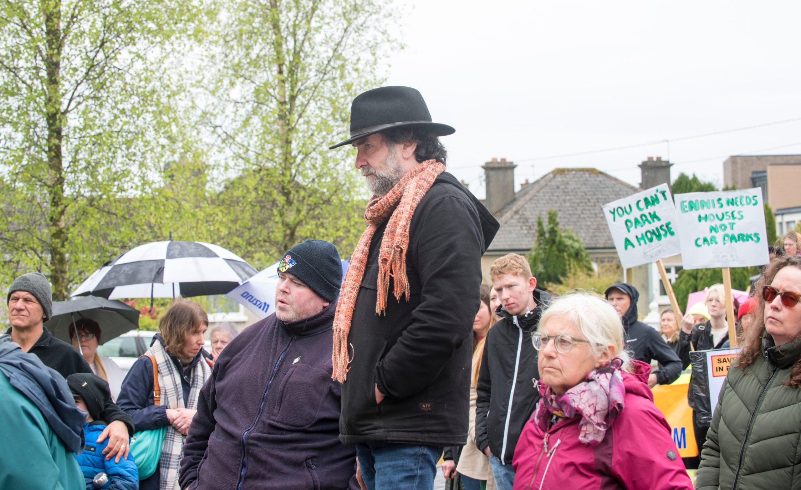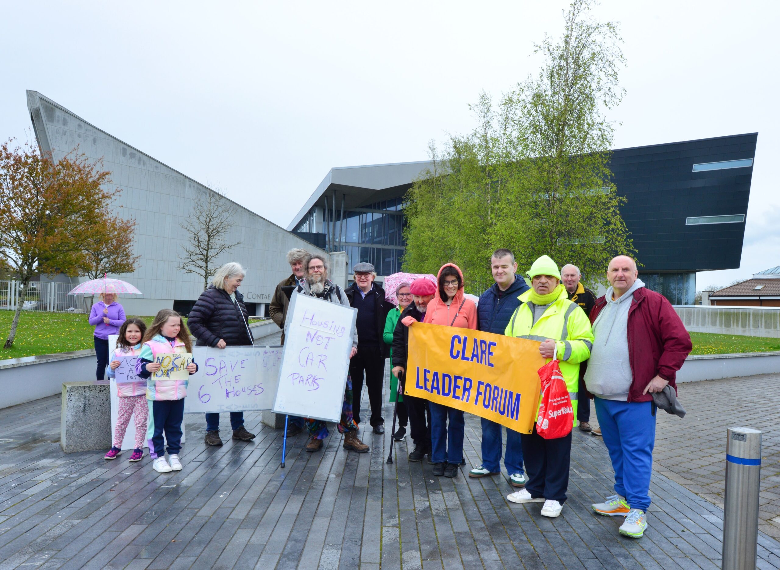 “I see us as the risen people of Co Clare,” remarked Thomas Guilfoyle, Chair of the Ennis Sinn Féin Cumann and spokesperson for the Save Francis Street Alliance. “Everyone here today sees that a house is worth a million more than a car park”.