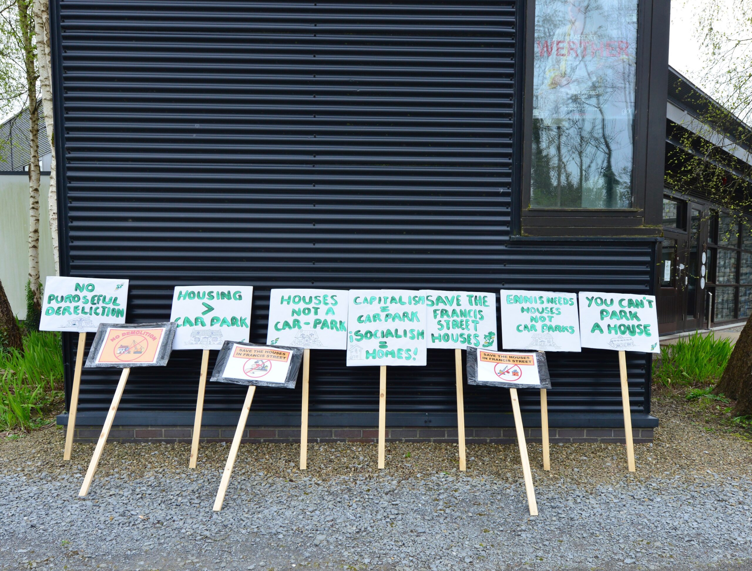 They are opposing the planned demolition of six properties in Francis St as part of the Ennis 2040 Strategy. pic.twitter.com/216fZ3ryeR