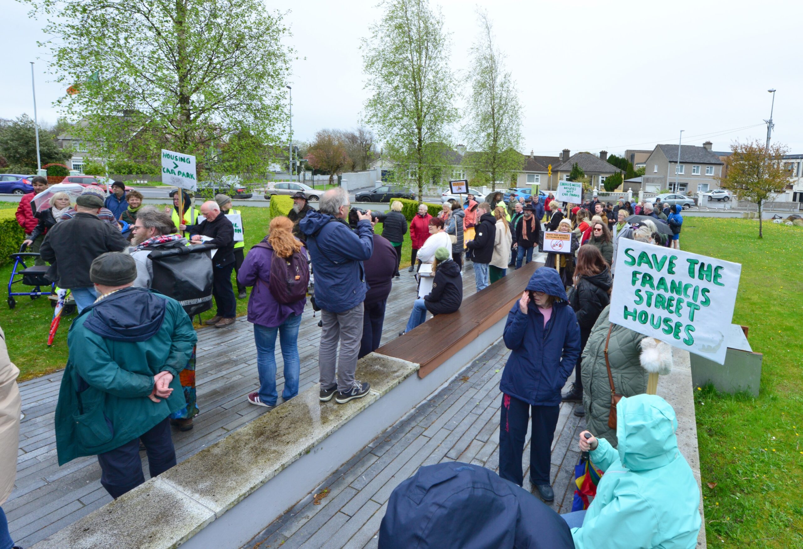 OVER 100 people marched to the offices of Clare County Council as the Save Francis Street Alliance took their first steps in protesting against the planned demolition of six properties in the county town in order to build a temporary car park at a fee planned to exceed €1m.