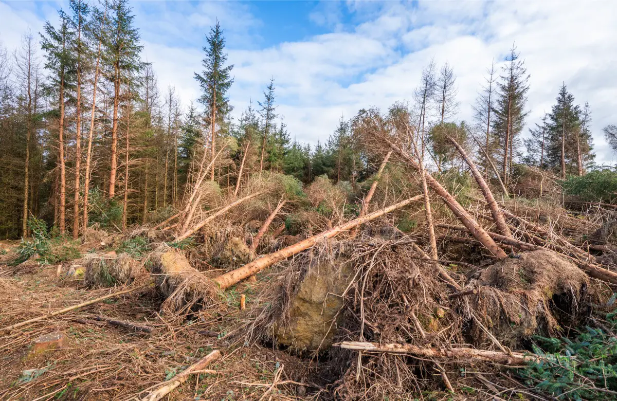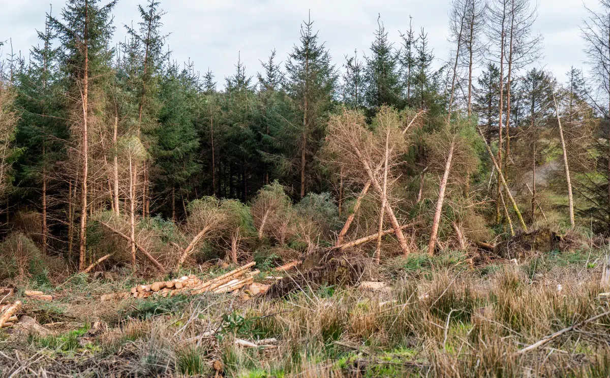 Storm Éowny’s damage to trees across the country has still been felt 60,000 acres of forest trees still on the ground, seven weeks later.