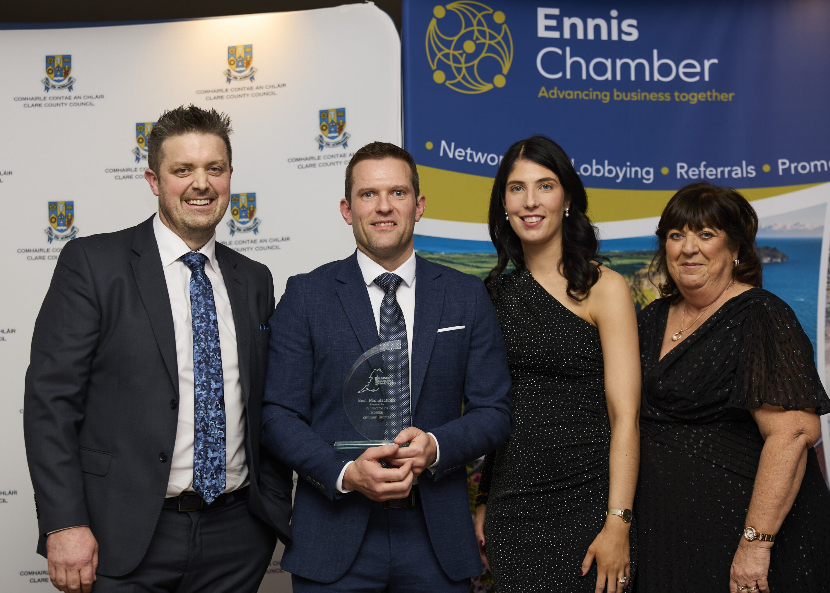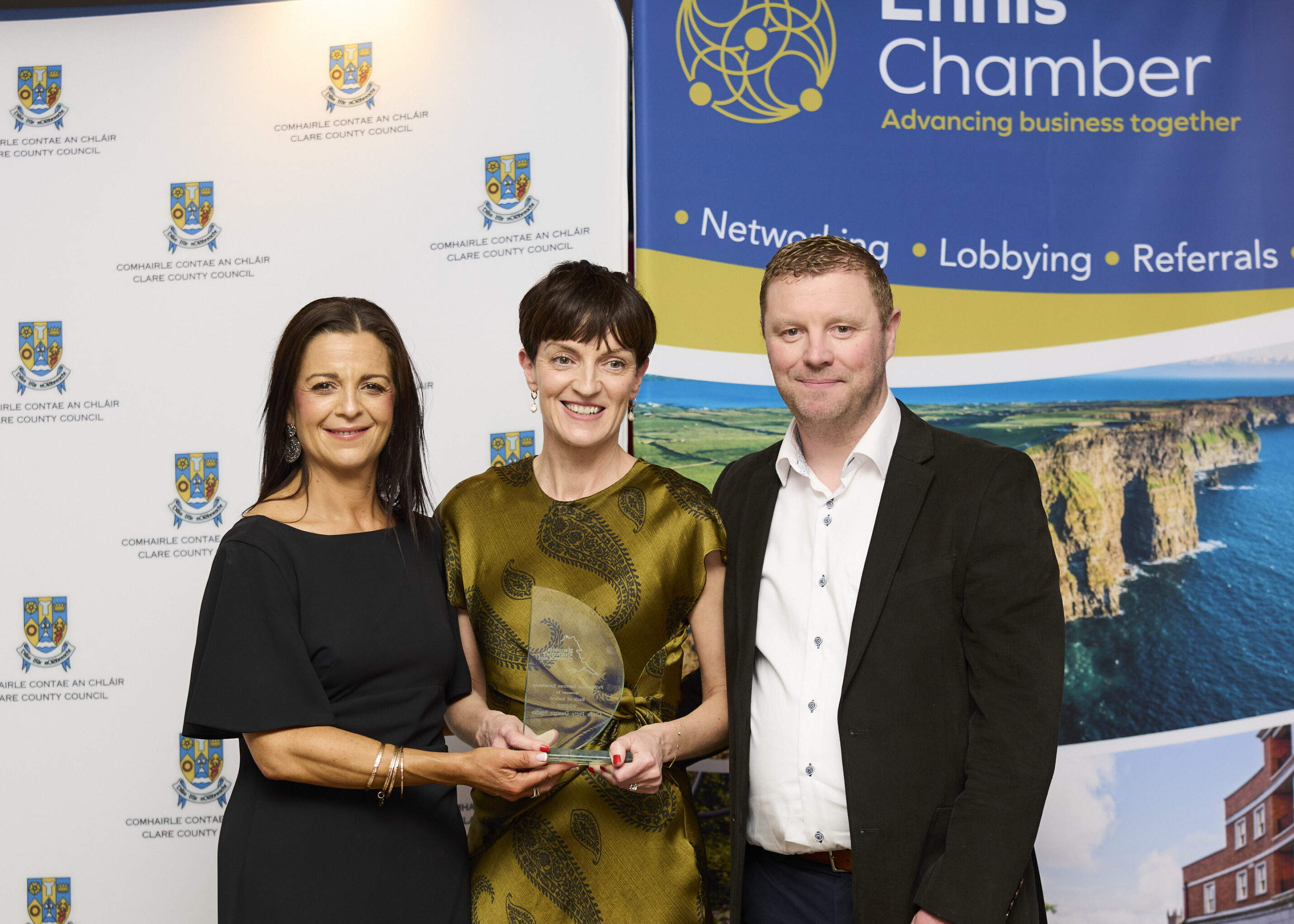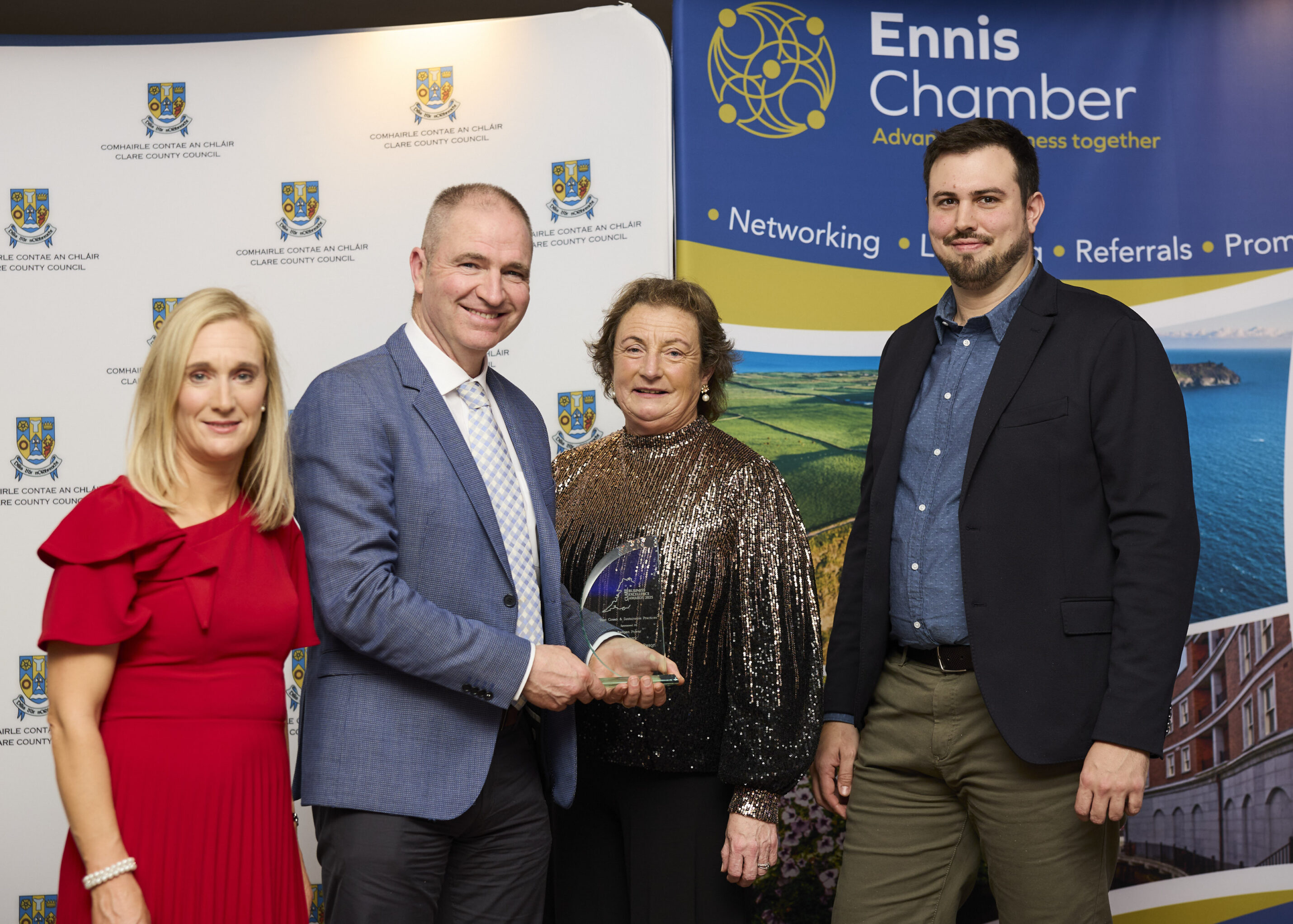 Cathaoirleach of Clare County Council, Cllr. Paul Murphy (FG) said, โ€œClare County Council was once again delighted to partner Ennis Chamber in presenting the Clare Business Excellence Awards. It was a pleasure to welcome so many Clare based businesses to the awards ceremony. The diversity and innovation of the businesses present was a positive reflection of a vibrant and sustainable local economy, and their success a testament to the resilience and determination they have demonstrated in recent years by overcoming many challengesโ€.