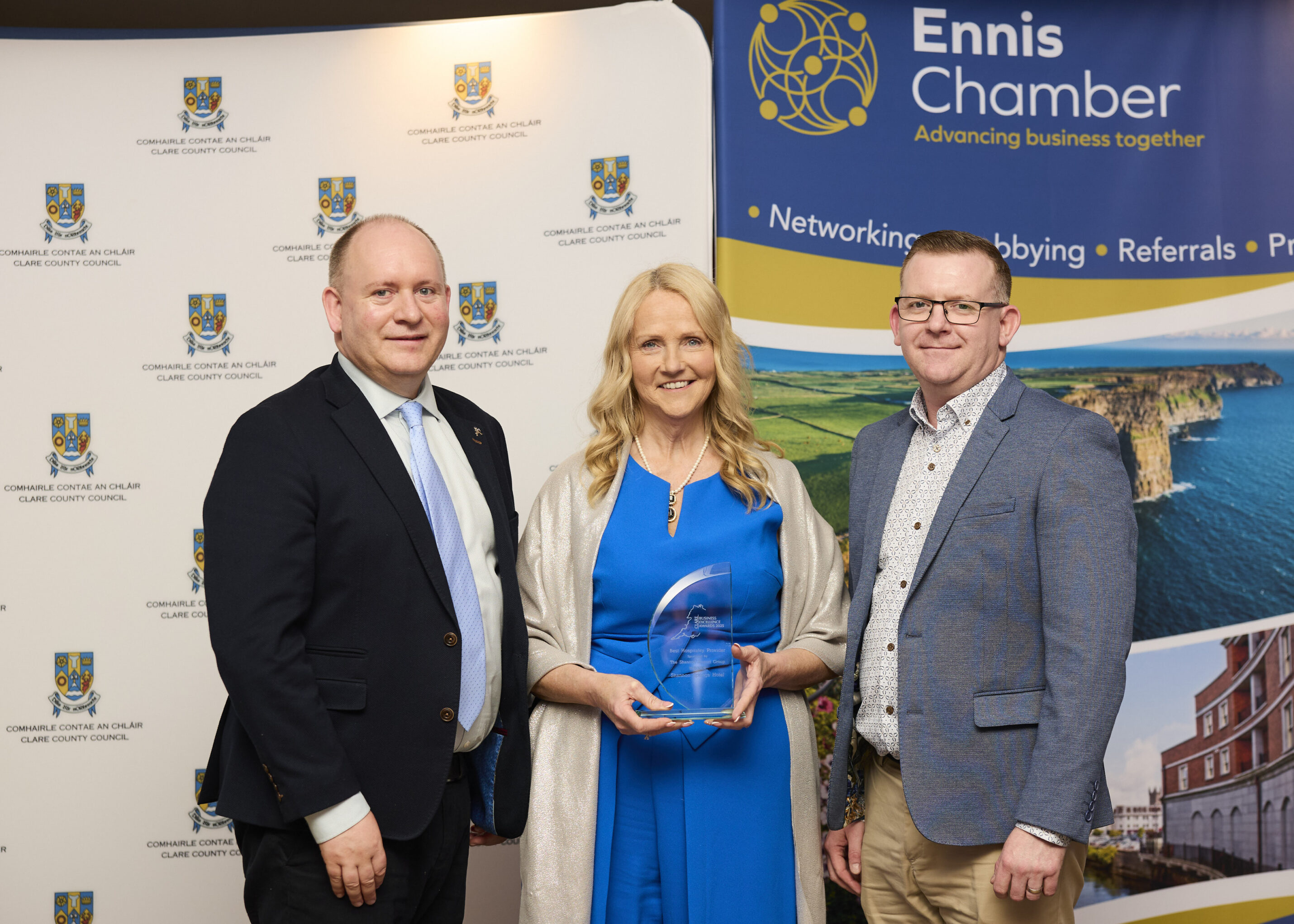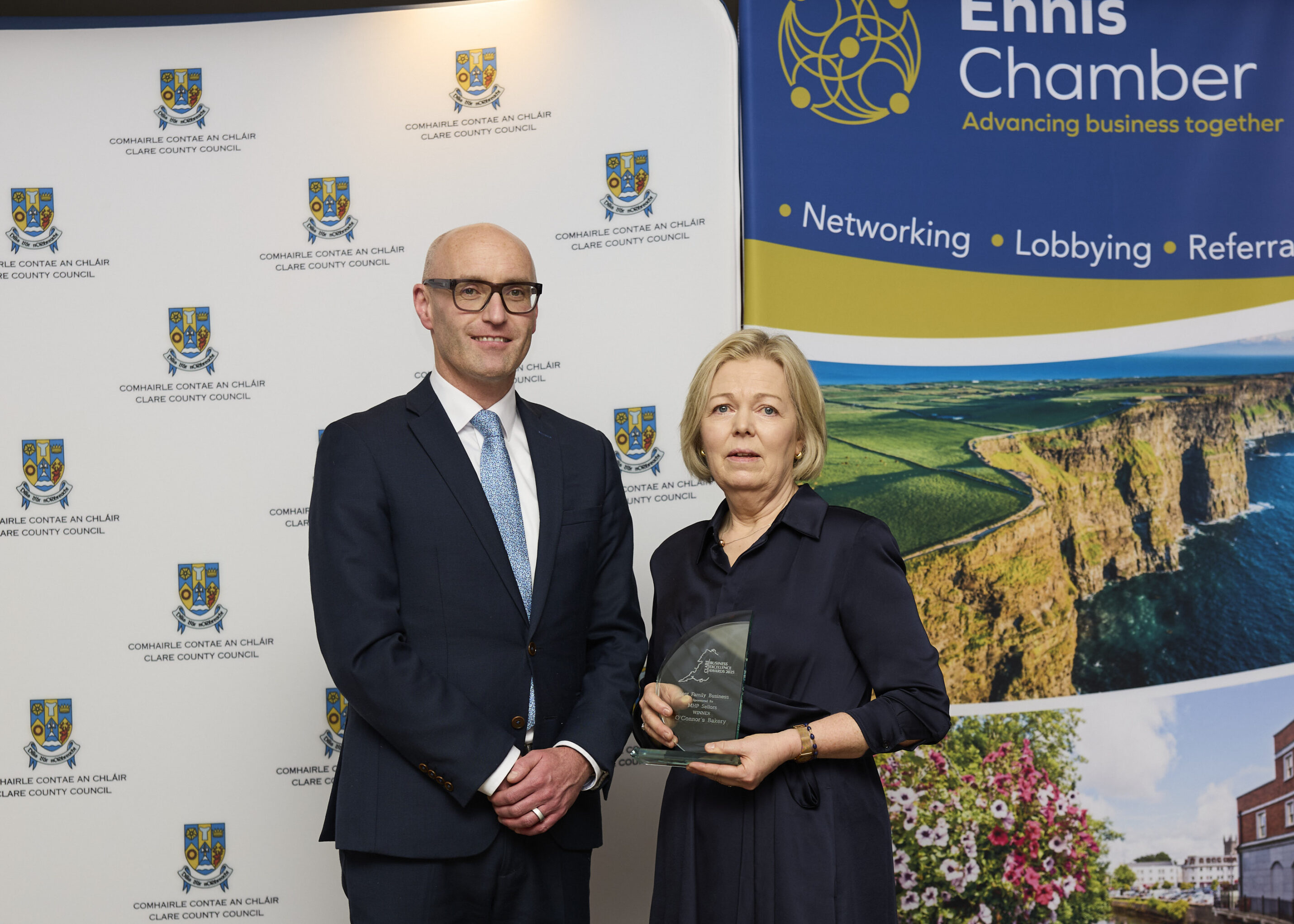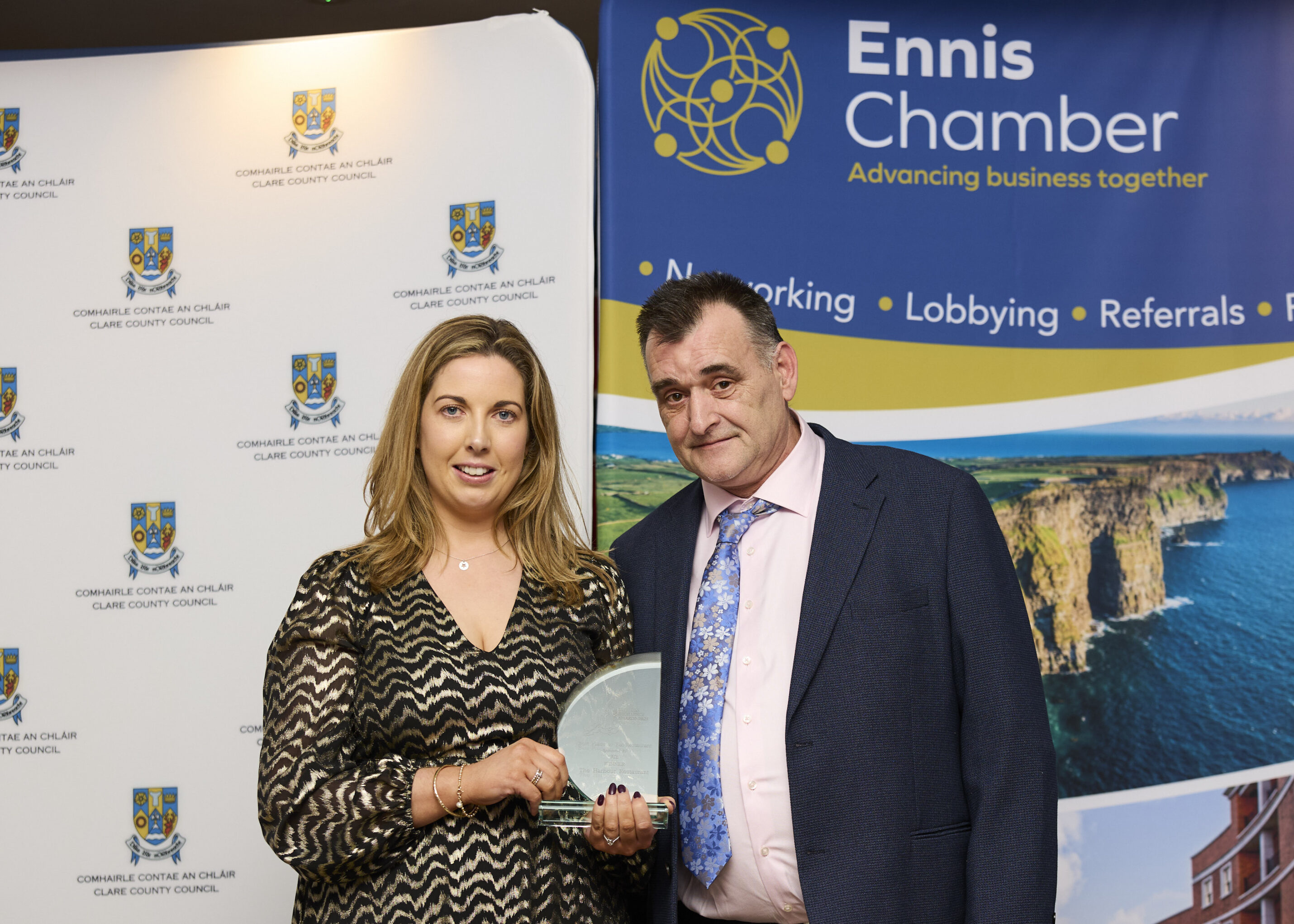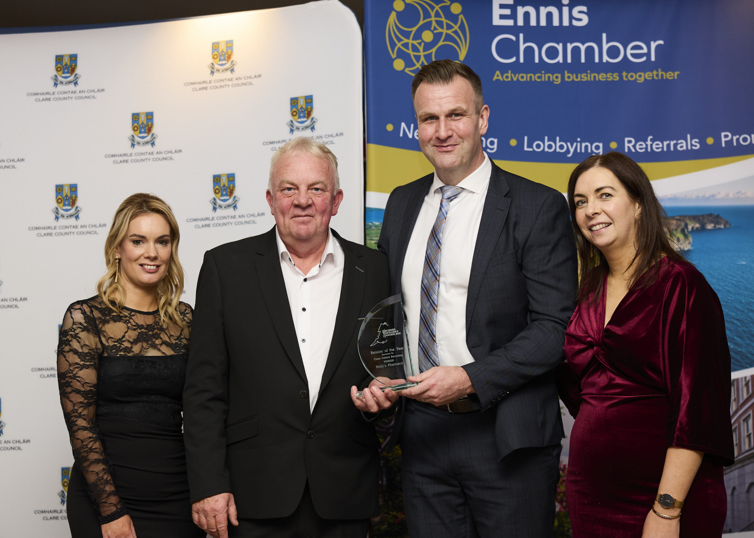 Cathaoirleach of Clare County Council, Cllr. Paul Murphy (FG) said, โ€œClare County Council was once again delighted to partner Ennis Chamber in presenting the Clare Business Excellence Awards. It was a pleasure to welcome so many Clare based businesses to the awards ceremony. The diversity and innovation of the businesses present was a positive reflection of a vibrant and sustainable local economy, and their success a testament to the resilience and determination they have demonstrated in recent years by overcoming many challengesโ€.