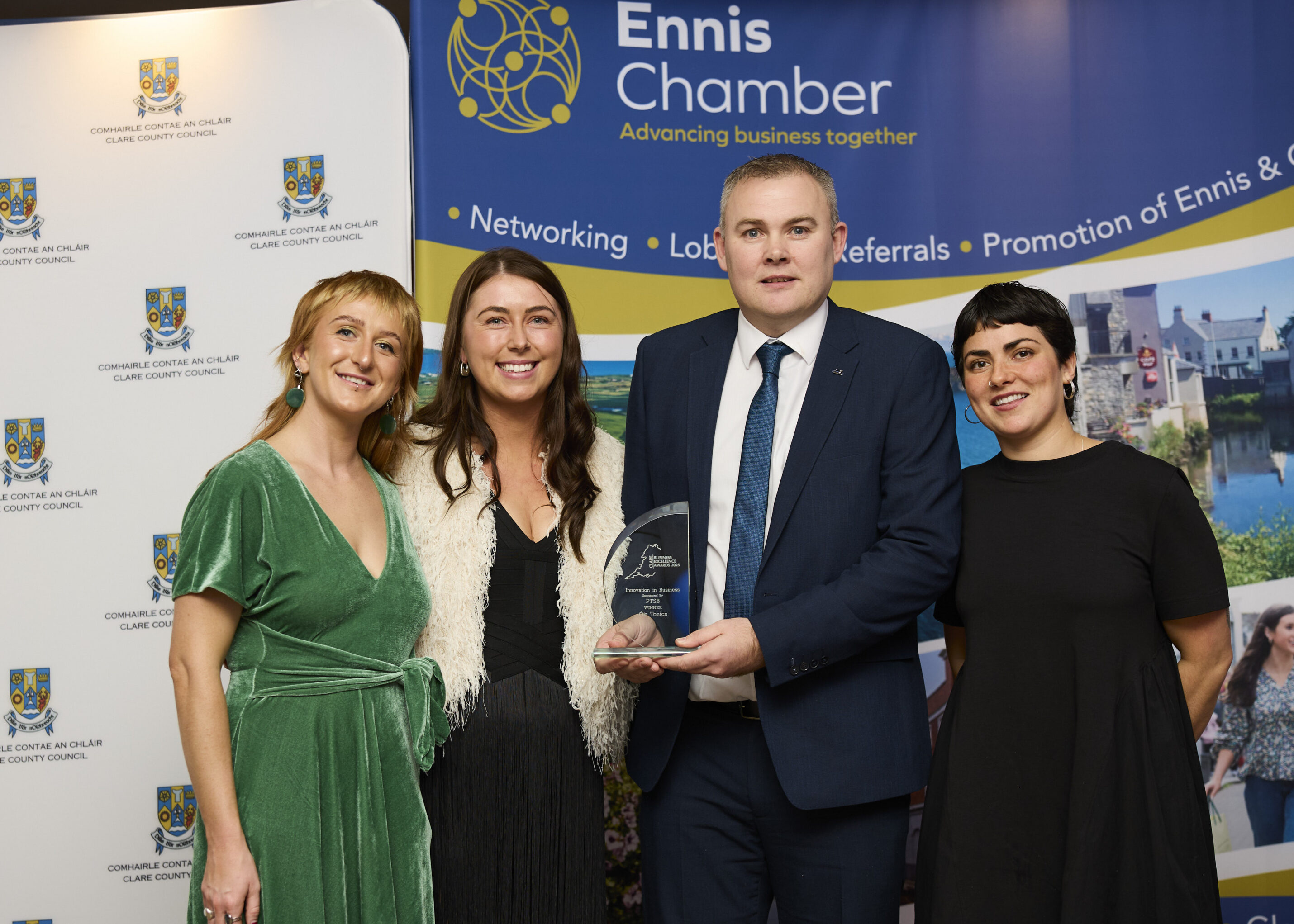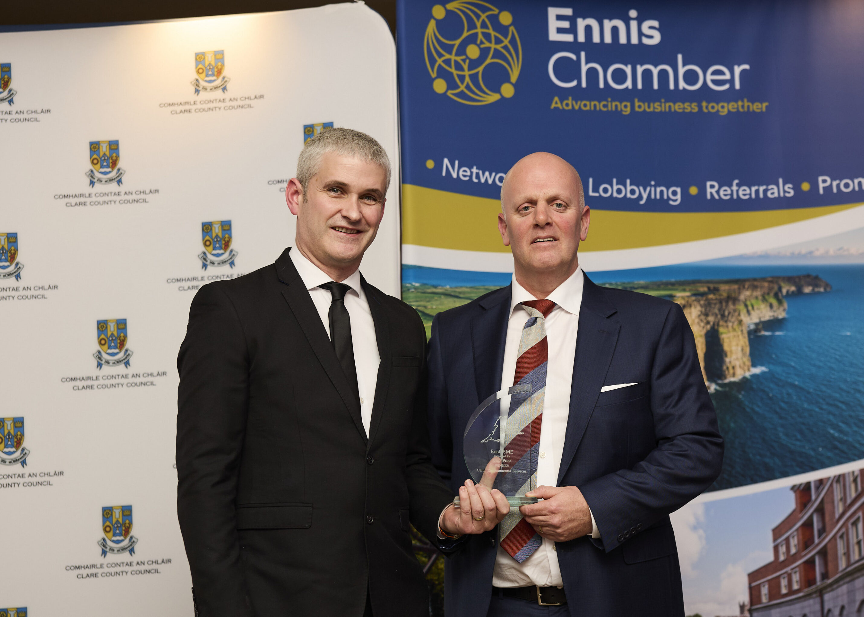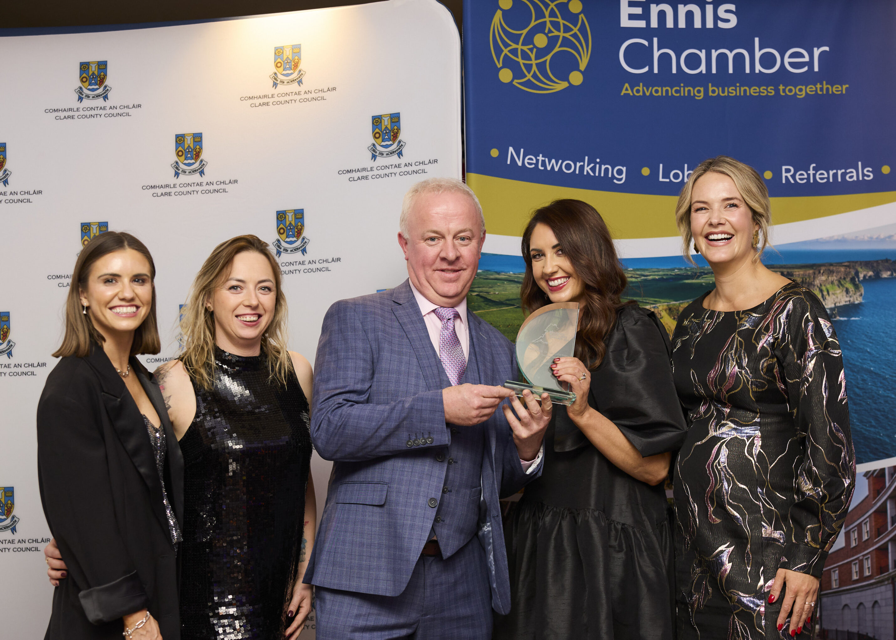 Ennis Chamber President Diarmuid McMahon said, โ€œClare Business Excellence Awards 2025 culminated in what was a fantastic night of celebration and entertainment. Iโ€™d like to congratulate the winners and all the finalists. The quality of the businesses represented in the room, from micro to multi-nationals was a proud testament to the calibre of businesses operating across County Clare.