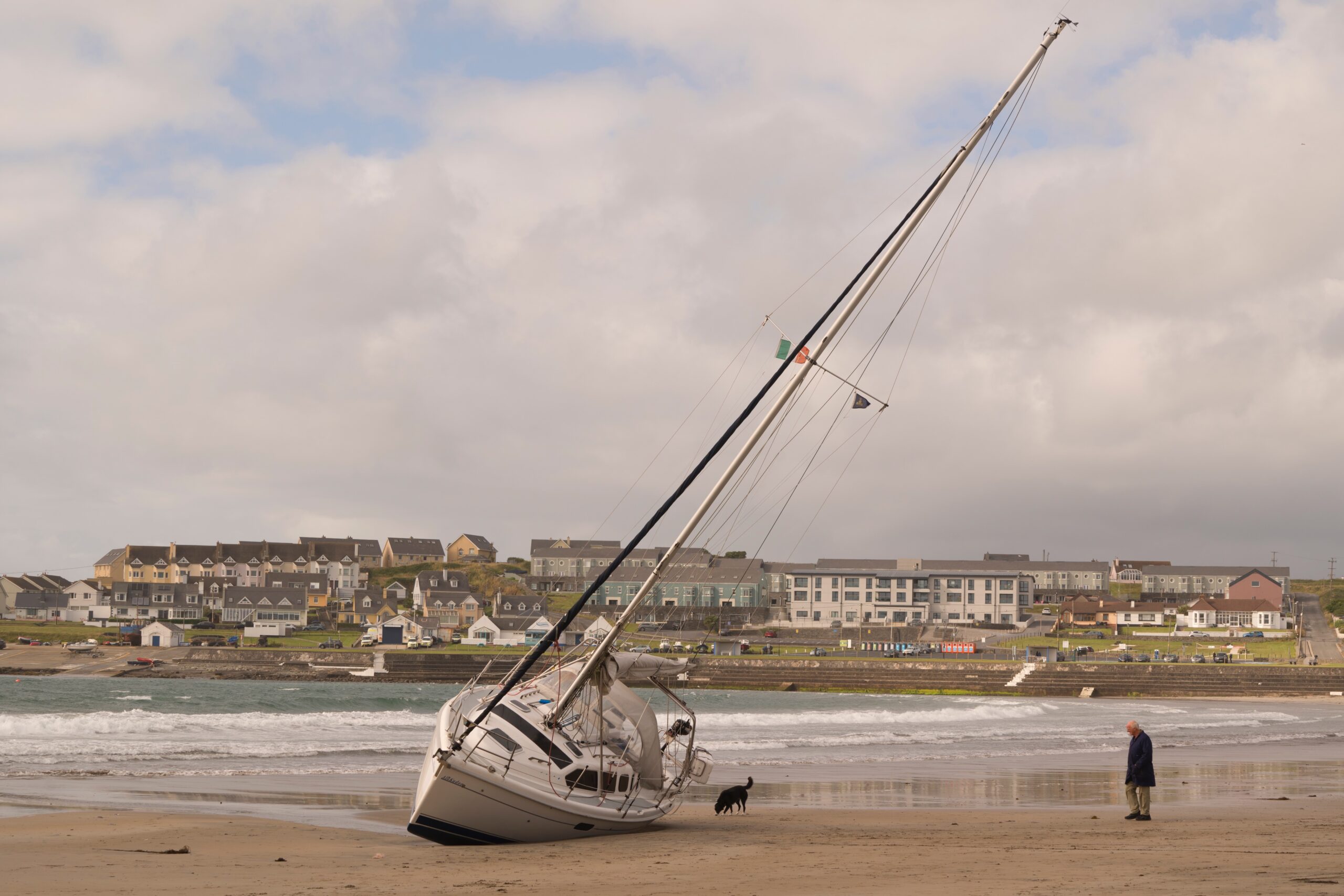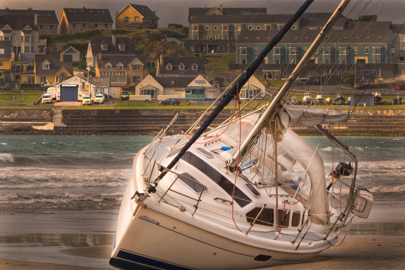 Last Wednesday a stranded yacht emerged on Kilkee Beach and it remained there until Tuesday when specialist equipment was needed to help transport it off the beach and back to Northern Ireland via road.